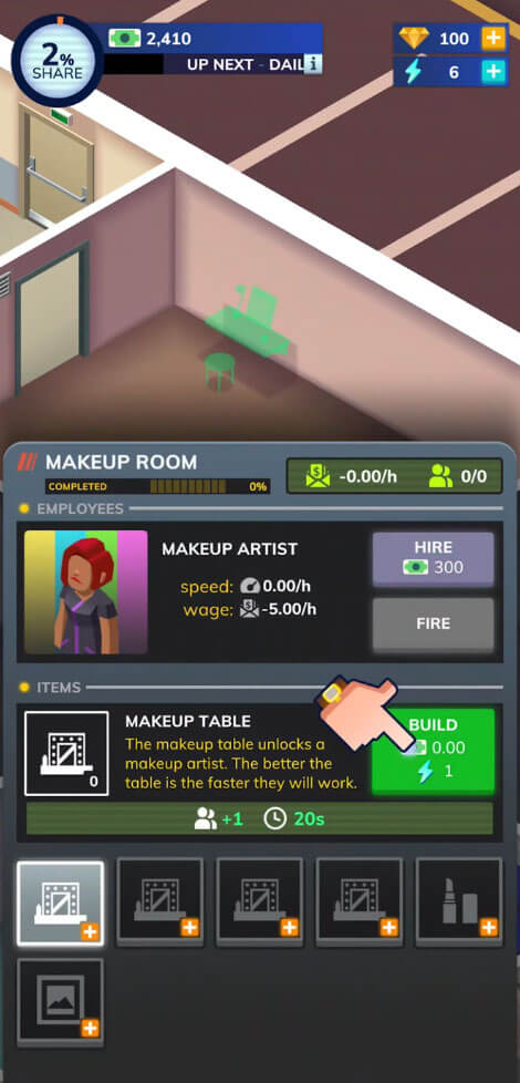 Start TV shows, earn rewards, and upgrade all aspects of your business to grow faster.