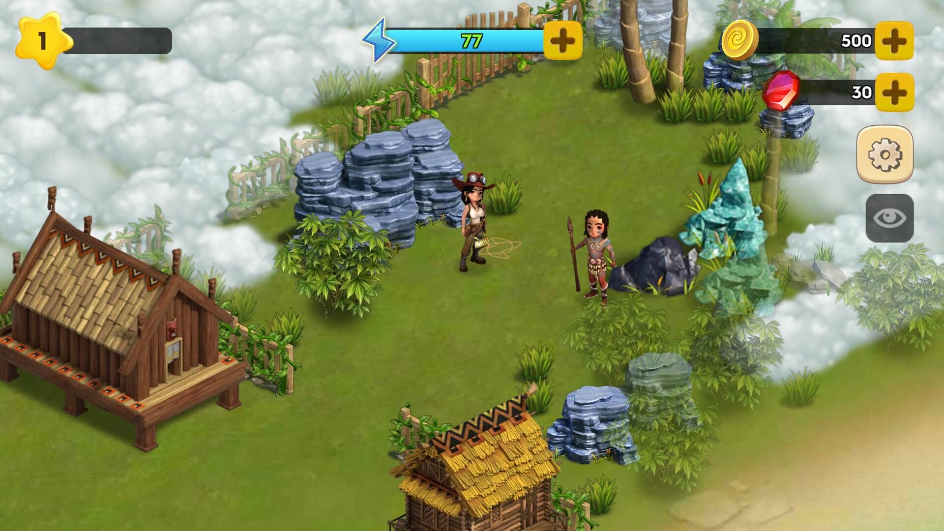 Make friends with the locals, gather resources and build an exotic farm and a big city